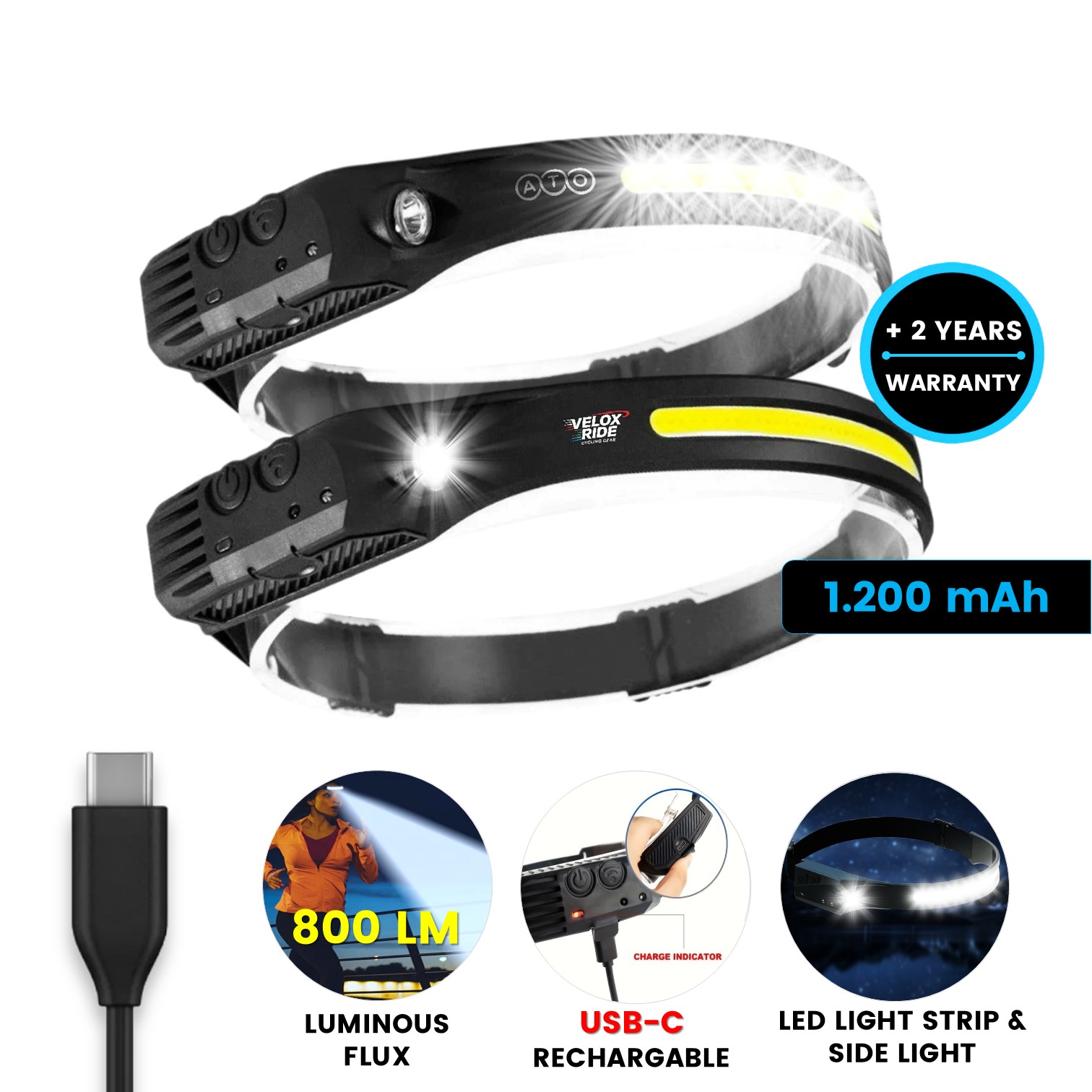 Čelovka s LED svetelným pásikom a bočným svetlom, s USB-C nabíjaním