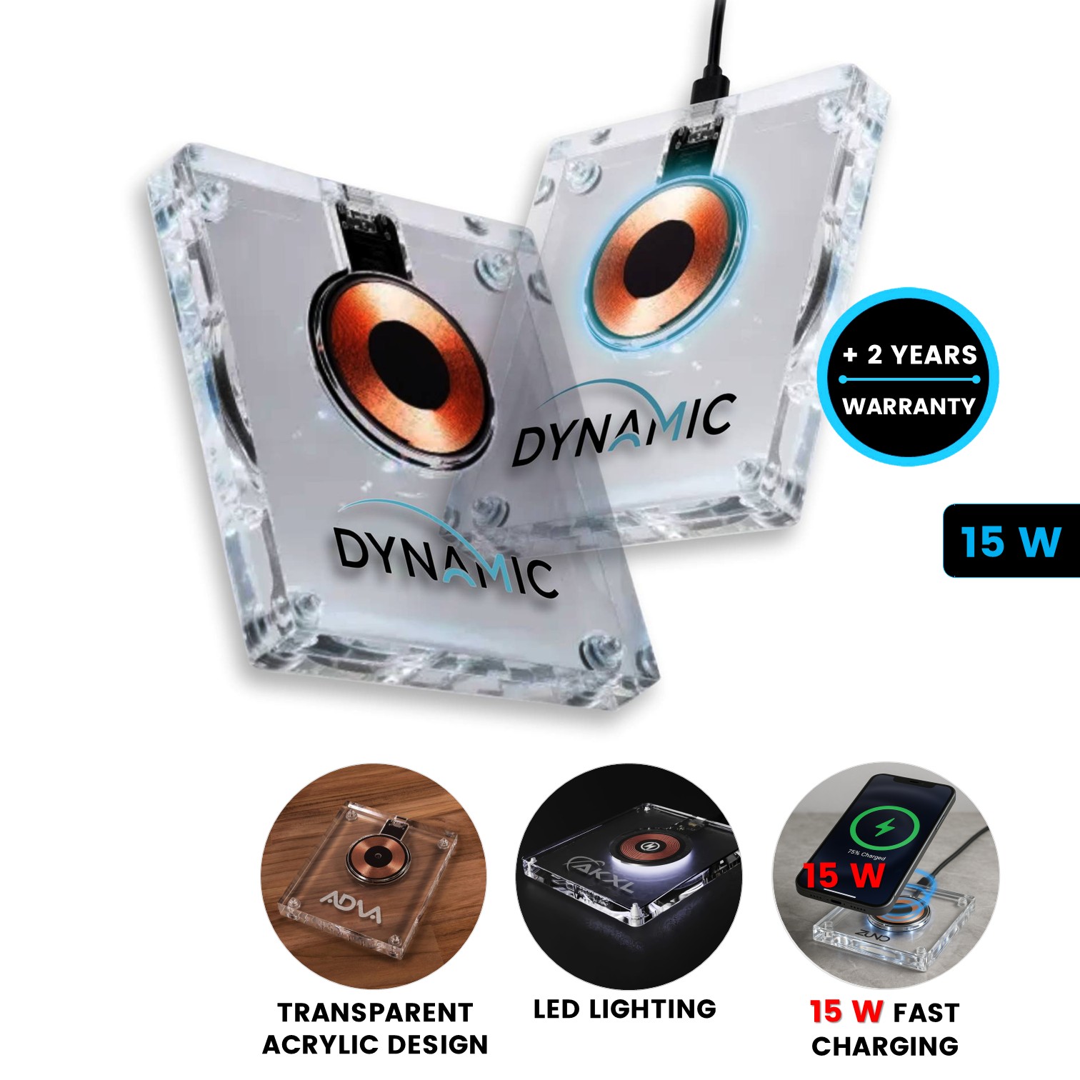 15 W transparentná bezdrôtová nabíjacia podložka CRYSTAL s LED podsvietením