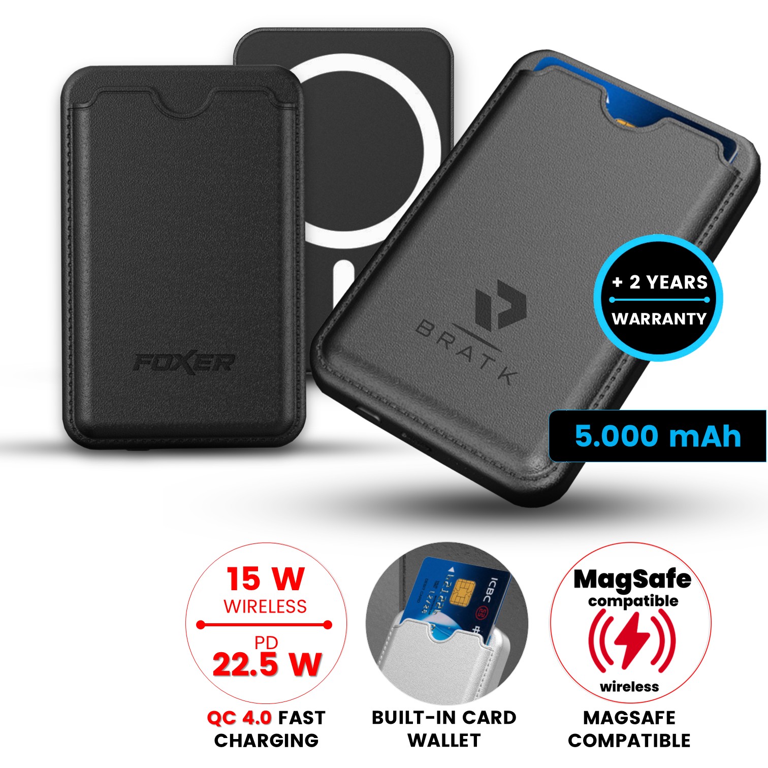 5000 mAh – magnetická powerbanka TANNOX, s 15 W bezdrôtovým nabíjaním a puzdrom na karty