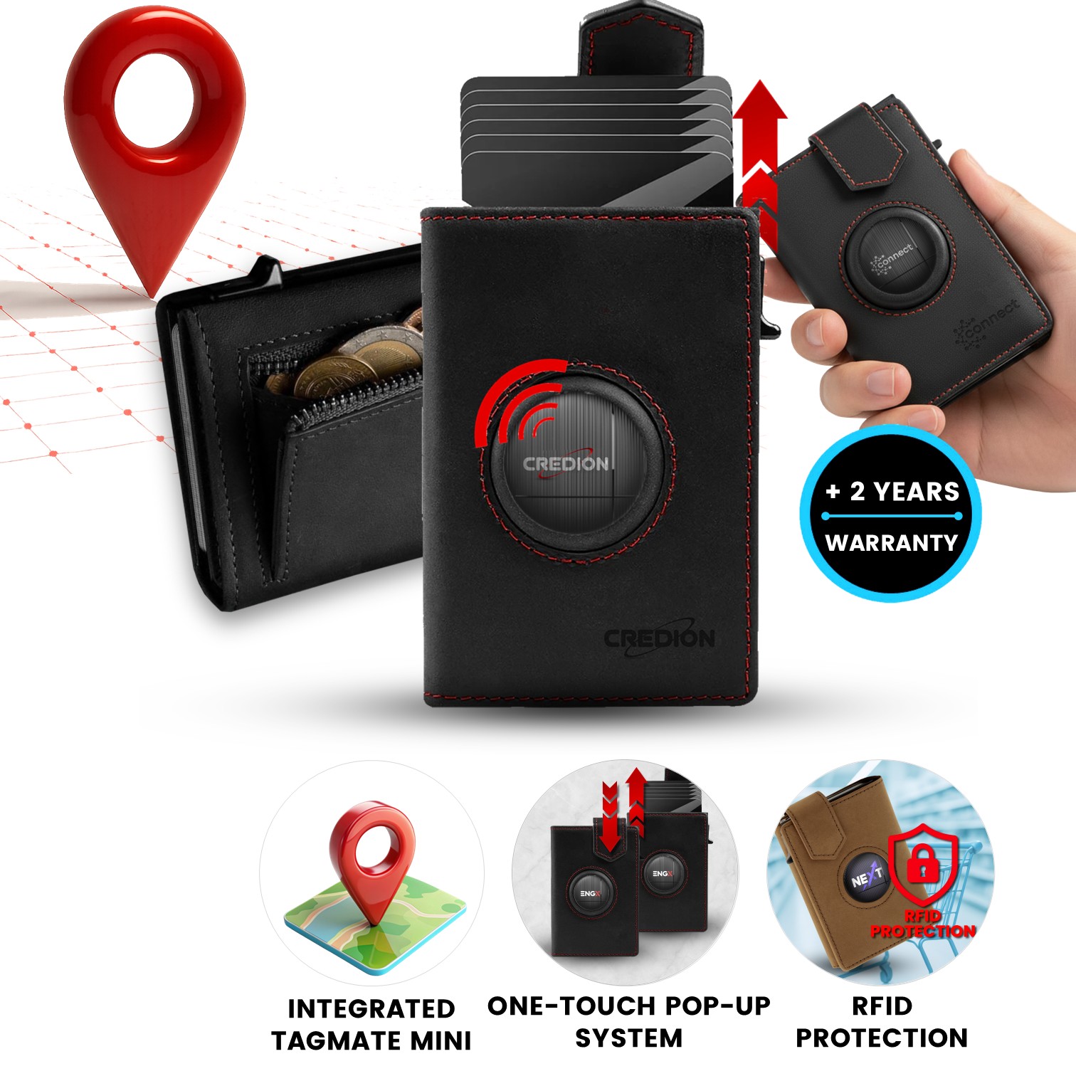 Kožená peňaženka s výsuvným puzdrom na karty Pop-Up, s integrovaným lokalizačným tagom TagMate Mini